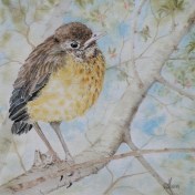Tags: baby bird, birds, Easter, juvenile Robin, N. American Robin, Spring, the seasons, Turdus migratorius, watercolour