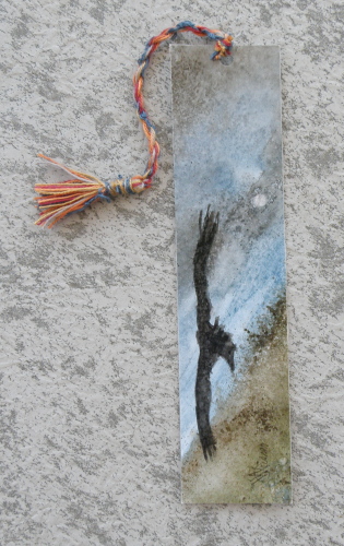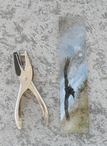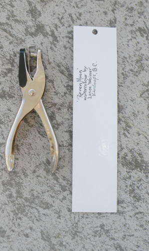 a title (in this case ‘Raven Moon’) and artist info can be written on the reverse before laminating….and the hole is punched at the top
