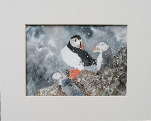 ‘Atlantic Puffin’, watercolour miniature, 12.5cm x 17cm, (5″ x 6.5″), Arches Hot Press 140 lb. Paper
