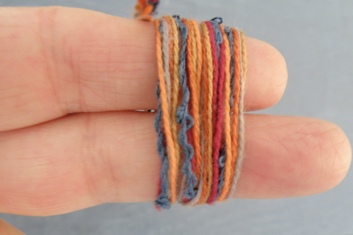 ….meanwhile, start your tassel by winding your choice of yarn(s) around the width of two fingers, thereby choosing how big or small you want the finished tassel to be….