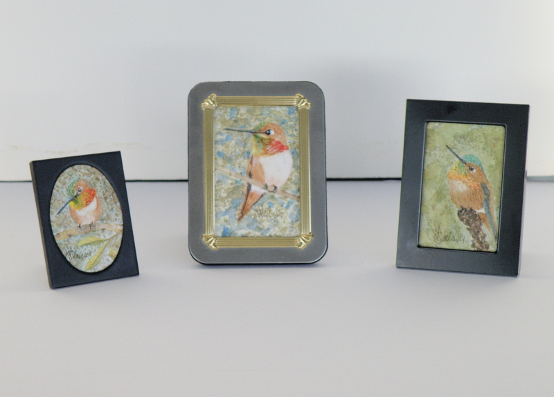 Rufus & Allen’s Hummingbird miniatures, approx. 3.8cm x 5cm (1.5″ x 2″), Arches Hot Press 140 lb. paper