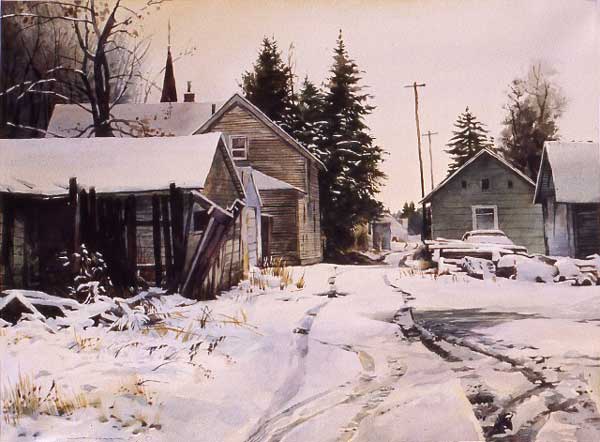 “I remember, when I must have been quite young, watching my older brother Greg draw. He was good. In the third grade our teacher taught us perspective, how to make a road go back and disappear into the mountains. I never forgot how to do that. When I was seven or eight years old, our family took a trip to Wisconsin to visit a friend of my Dads. He was a professional watercolorist. I remember the drive through the woods, walking up to his front door, through the entry, looking up at the walls as soon as I entered the house. I wanted to see his paintings. Randy Penner. I’ll never forget that name or that trip and the influence it had on me. “In Junior High I took some art, mechanical drawing and enjoyed it. I wrote a career paper on becoming an artist but never really thought that it was possible. In college I decided to major in physical education since I considered an art major unrealistic. The second year I switched to a commercial art major since the community college had a good graphics program. It was during the three years of training to become a commercial artist that I took watercolor. My first watercolor class I got a “C”. The worst grade I had ever received in any art class. I was required to take it again the following year and it went much better. Not only did I get an “A”, but I fell in love with it. I started selling my paintings before I graduated for as little as $2. In the fall of 1973 I had made a decision to try to make a living as a full time, professional watercolorist and have managed to do that now for more than thirty years.” Stan Miller