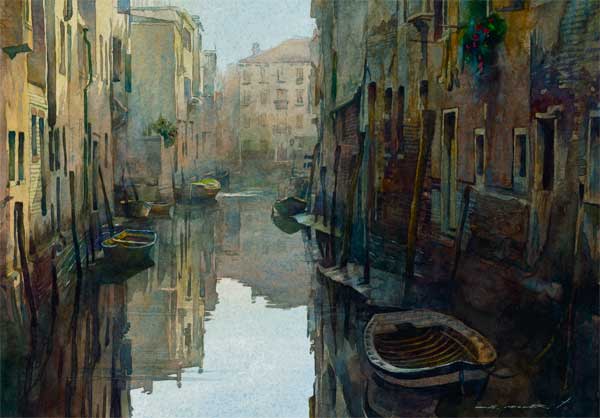 “Venice Calm”, watercolour, Stan Miller, AWS (sold)