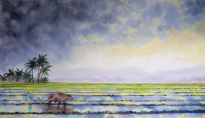 There is something so completely humbling about how humans are graced with the educational presence of massively-strong animals whose disposition is nonetheless docile, coupled with a willingness to be put to work with little being asked in return. My three stays in The Philippines of some 6 weeks each, allowed me to learn from the perfect symbiosis of rice worker and carabao, whose calm partnership in the tending of the greenest of green fields was both reassuring and a powerful living metaphor.
