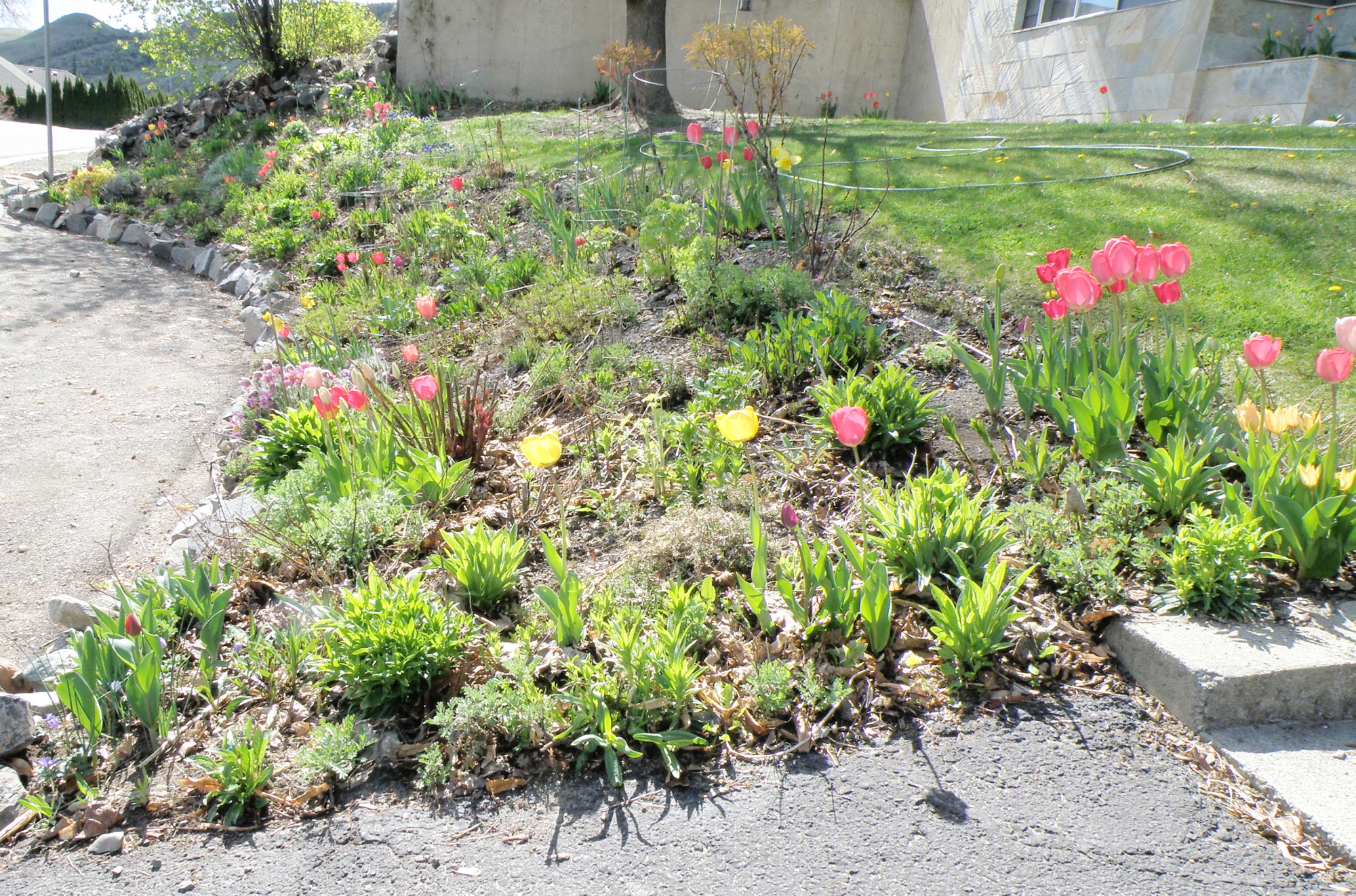 LAST AUTUMN was an opportunity to greatly increase the number of tulips and daffodils, which was done. Over previous Springs, it became apparent that the so-called soil (really, ‘skree’ is the actual condition of the earth here) wasn’t what Spring bulbs thrived in. ‘Designer bulbs’ from Holland (not cheap) bloomed well the first year, and hardly even showed up the subsequent year.