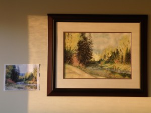So–one photo–twenty artists–twenty different paintings based on the same photo. And the winning photo was taken by a Member of The Artists’ Studio of The Icicle River in Levenworth, Washington, U. S. A.